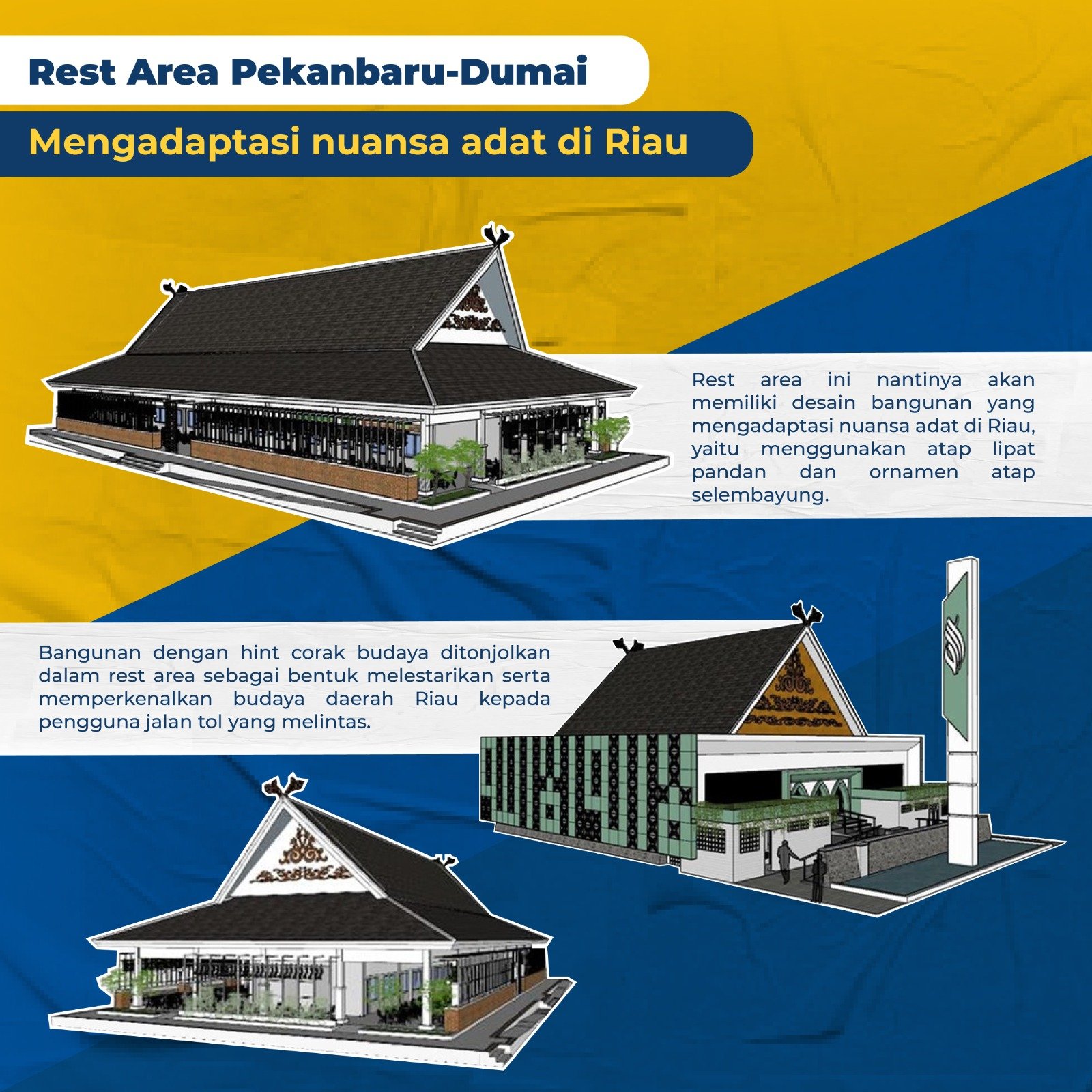 Jakarta – Kementerian PUPR terus mendukung pembangunan Tempat Istirahat dan Pelayanan (TIP) atau rest area permanent yang ada di Jalan Tol Pekanbaru – Dumai berkonsep melayu yang dibangun oleh PT Hutama Karya (Persero).
